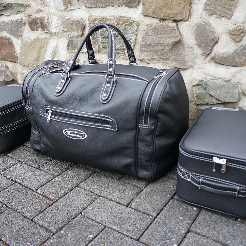 Das hochwertige 3-teilige Set für den hinteren Kofferraum des Aston Martin V8 Vantage Roadster ist perfekt auf Ihren Wagen zugeschnitten. Der Leichtbau-Rahmen der beiden Koffer sorgt für Stabilität und leichte Handhabung. Die Tasche ist großzügig geschnitten und bietet mit den drei zusätzlichen Seitentaschen viel Platz für alles nötige, was auf der Reise nicht fehlen darf. Das feine Innenfutter aus Ancarra®-Mikrofaser verleiht dem Set eine edle Optik.
