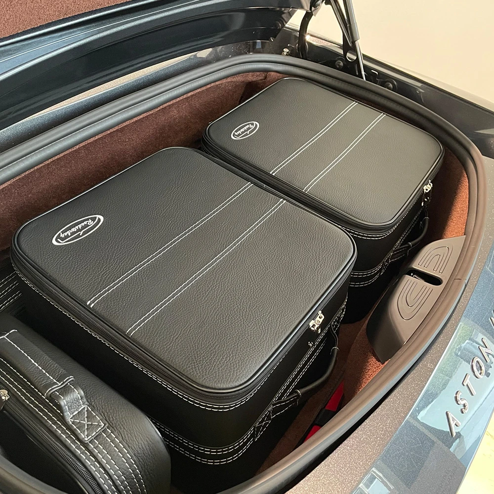 Das 4-teilige Kofferset aus italienischem Leder ist optisch und in der Größe hervorragend auf den Kofferraum des Modells Aston Martin Vantage Roadster abgestimmt. Zwei große Koffer und zwei kleinere Koffer lassen sich zentimetergenau in Ihrem Wagen unterbringen und nutzen so den vorhandenen Stauraum optimal aus. Der Leichtbau-Rahmen der Koffer sorgt für Stabilität und leichte Handhabung. Das feine Innenfutter aus Ancarra®-Mikrofaser verleiht dem Set eine edle Optik.