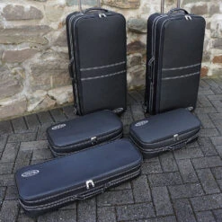 Dieses fünfteilige Kofferset ist die ideale Wahl, wenn Sie mit Ihrem Audi A5 Cabrio gerne Ausflüge mit großem Gepäck unternehmen. Die beiden praktischen Trolleys und drei geräumige Zusatzkoffer passen durch ihr Design perfekt in den Kofferraum Ihres Wagens. Hergestellt aus Markenkunstleder mit einem hochwertigen Innenfutter aus Ancarra®-Mikrofaser und luxuriöser Stickerei sind diese Gepäckstücke optisch absolut gelungen. Ein innovativer Metall-Kunststoff-Verbundrahmen sorgt für die nötige Stabilität. Dank bequemer Tragegriffe und modernem Trolleygestänge lassen sich die Koffer komfortabel transportieren.