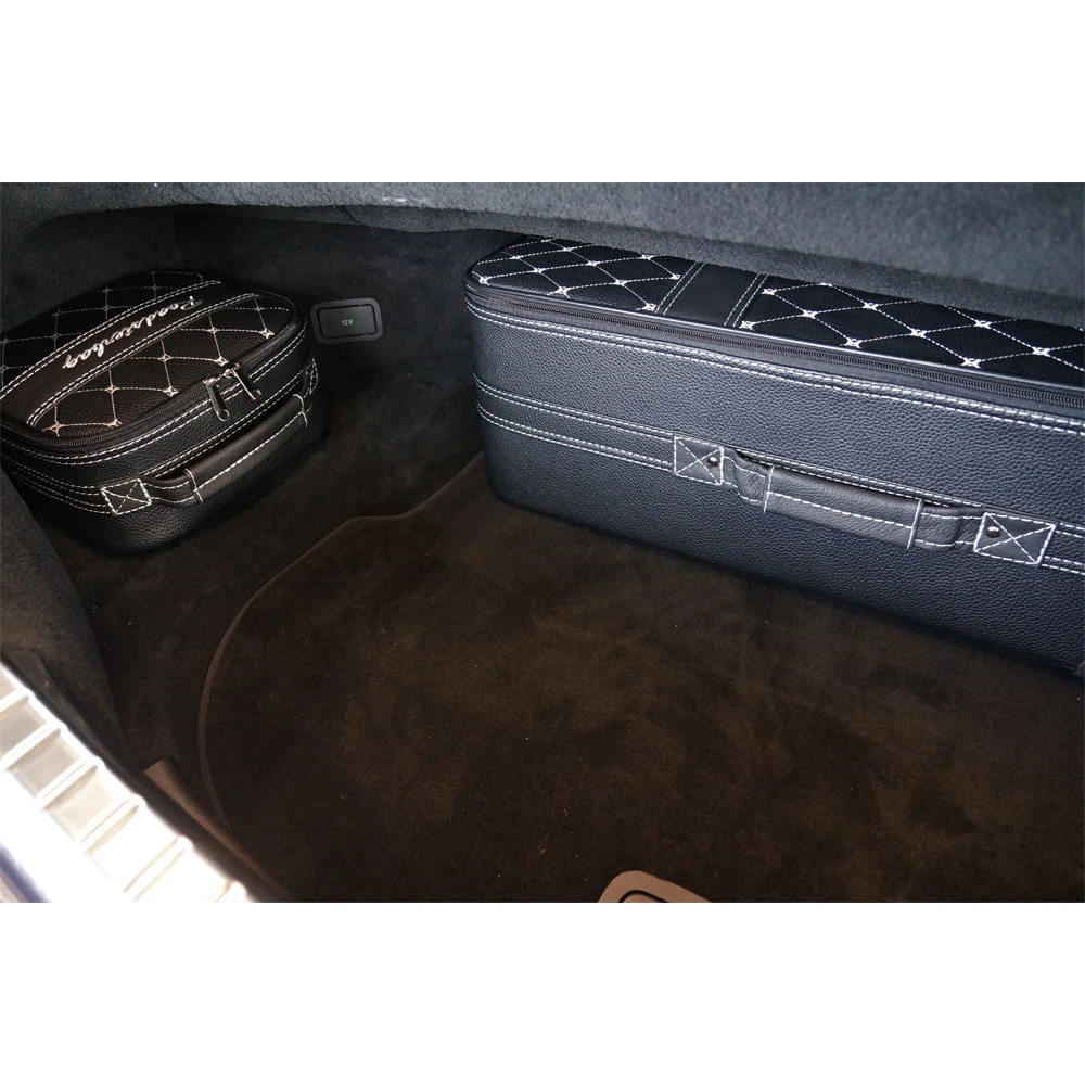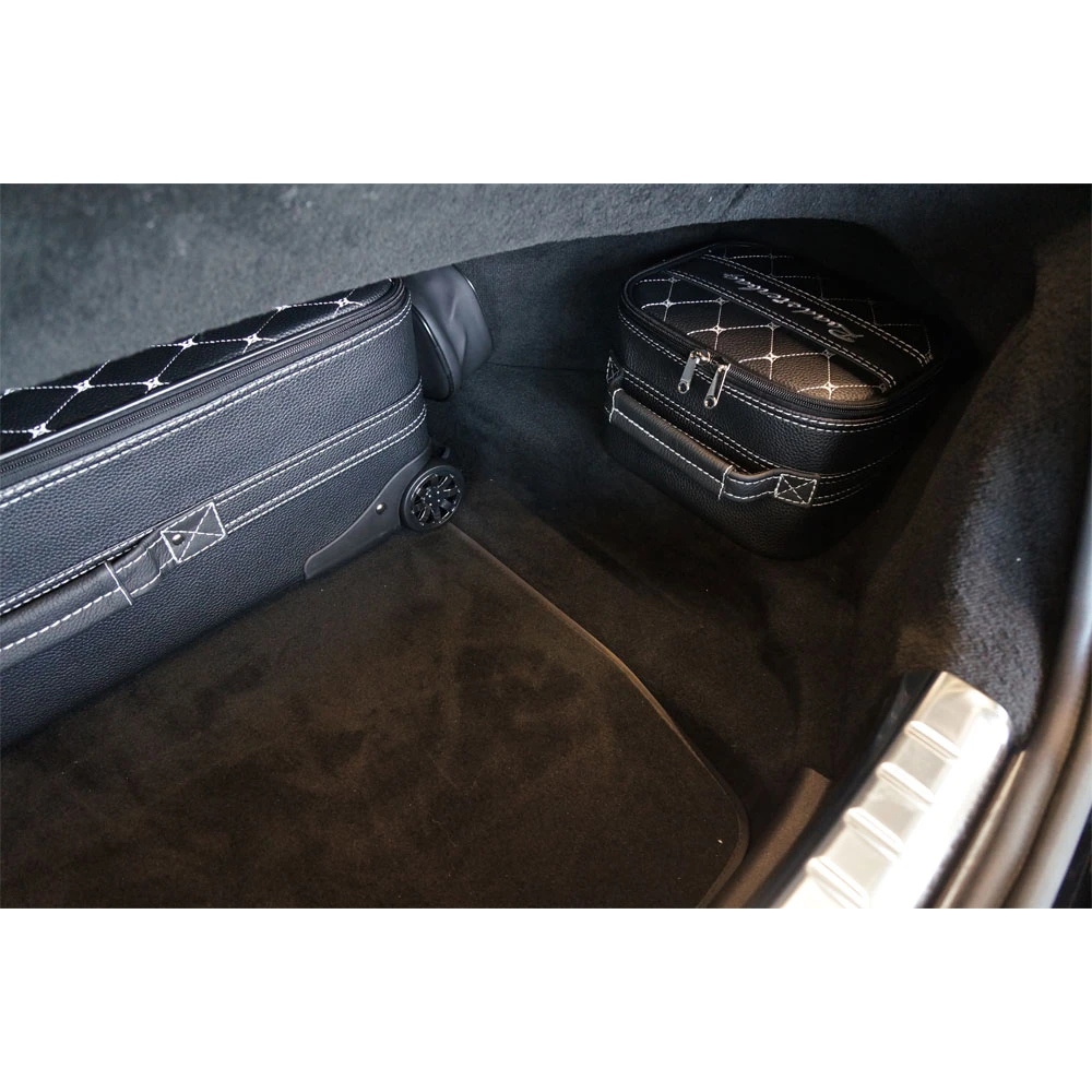 Dieses 2-teilige Kofferset wurde speziell für das Continental GT Cabrio von Bentley entwickelt und passt exakt in den Kofferraum, ohne Platz zu verschwenden. Dieses Kofferset ist die perfekte Ergänzung zu Ihrem 4-teiligem Kofferset. Die Dachmechanik wird nicht beeinträchtigt, so dass Sie mit maximalem Gepäck und offenem Dach auf Tour gehen können. Der Leichtbau-Rahmen der Koffer sorgt für Stabilität und leichte Handhabung, das gestickte Logo, wählbare farbige Nähte und feines Innenfutter aus Ancarra®-Mikrofaser verleihen dem Set eine edle Optik. Die kleinen Taschen stecken Sie auf den Teleskopgriff der Trolleys auf. Das Handling von so vielen Koffern wird so zum Kinderspiel.