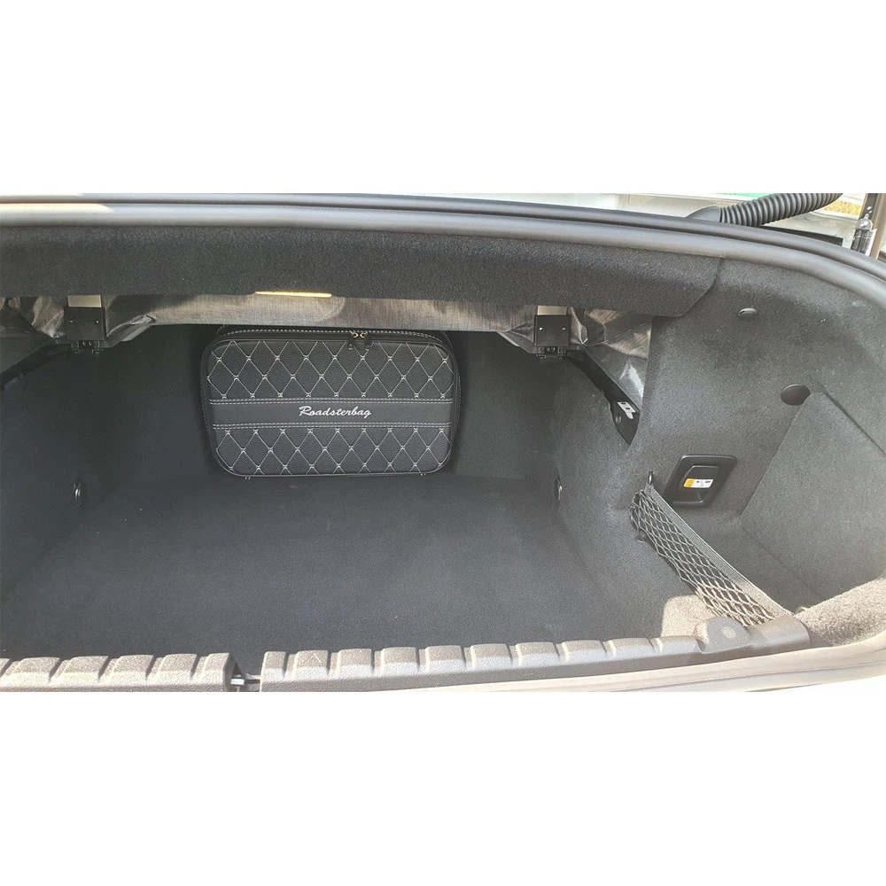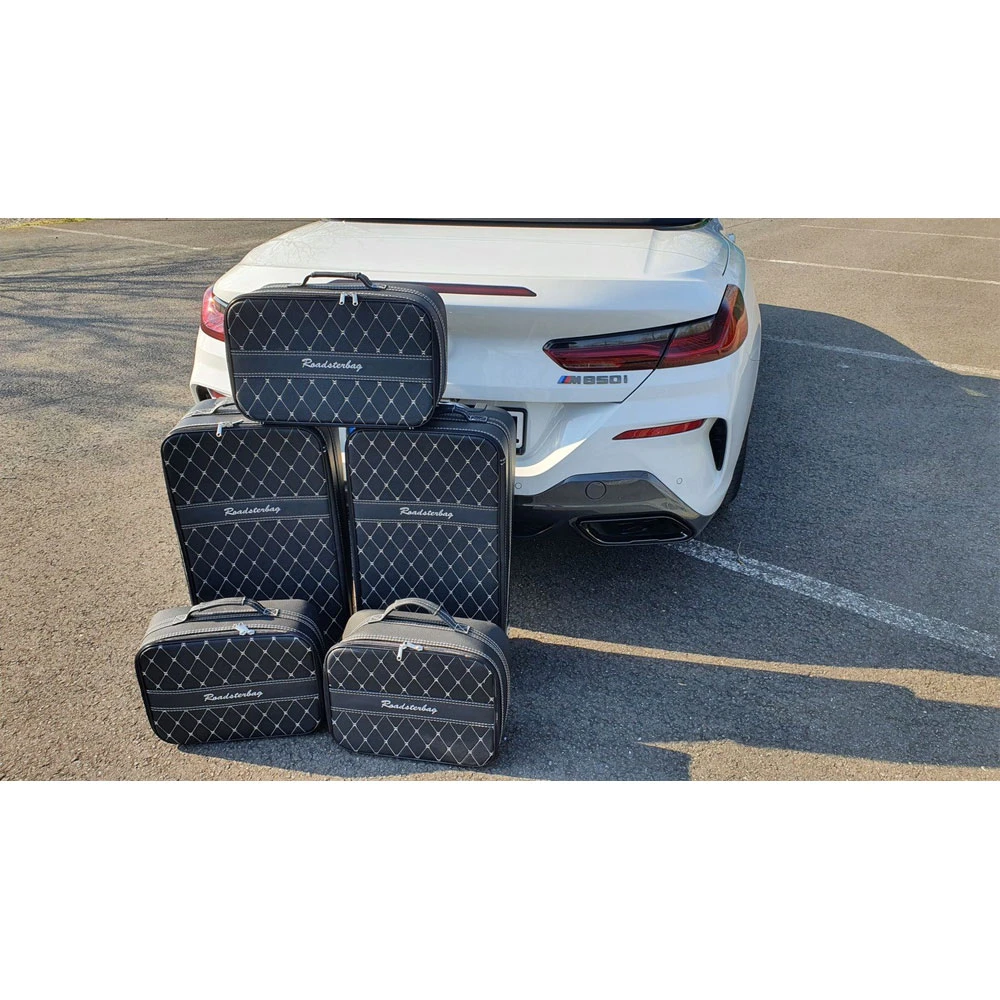 Dieses 5-teilige Kofferset wurde speziell für das BMW 8er Cabrio G14 entwickelt und passt exakt in den Kofferraum, ohne Platz zu verschwenden. So können Sie immer mit maximalem Gepäck auch bei offenem Verdeck auf Tour gehen. Die Koffer verfügen über einen abschließbaren Deckel mit Innenfach (mit Reißverschluss) und Spannbänder für die Fixierung des Kofferinhaltes, damit bei der Reise nichts verrutscht. Die Trolleys verfügen über einen voll versenkbarem Griff und kugelgelagerte, verchromten Felgen mit extrabreiten Reifen und lassen sich so im vollen Zustand einfach fortbewegen. Der Leichtbau-Rahmen der Koffer sorgt für Stabilität und leichte Handhabung, das gestickte Logo, wählbare farbige Nähte und feines Innenfutter aus Ancarra®-Mikrofaser verleihen dem Set eine edle Optik.
