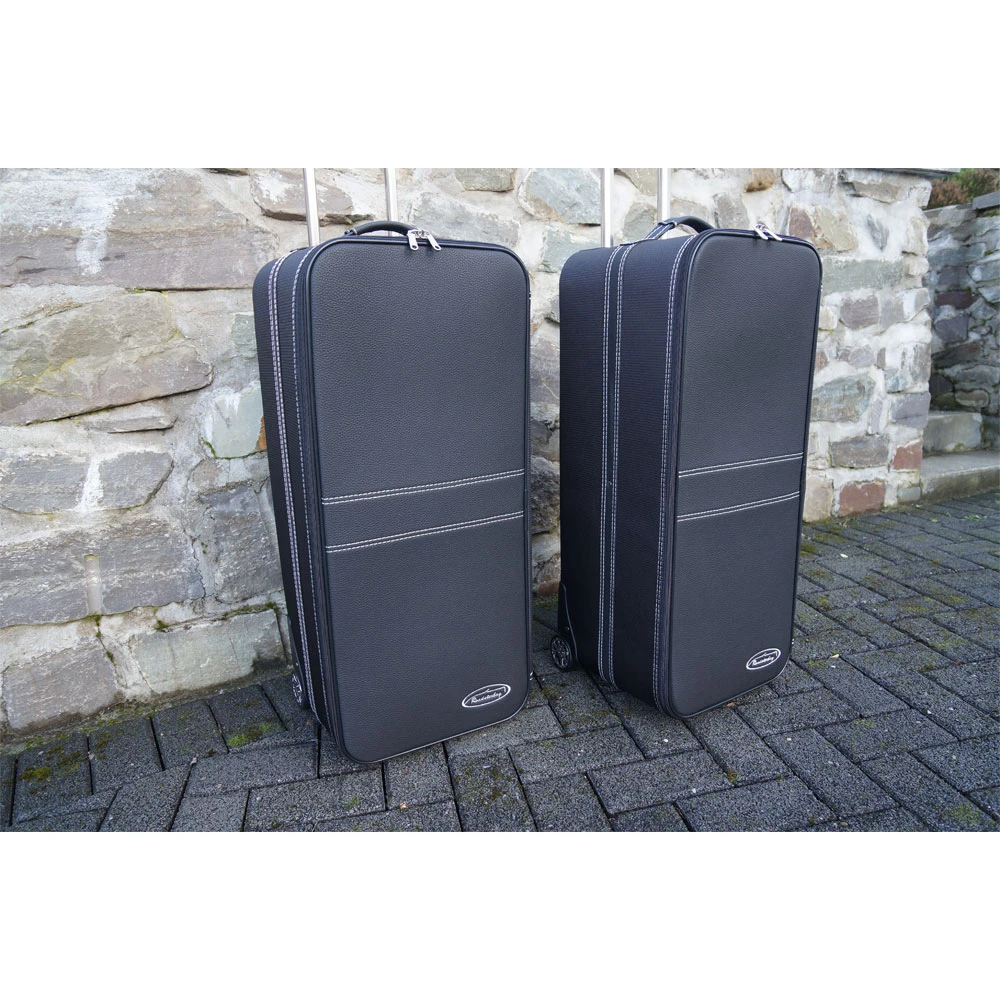 Dieses 2-teilige Kofferset wurde speziell für den BMW Z4 E85 entwickelt und passt exakt in den Kofferraum, ohne Platz zu verschwenden. Ein Koffer passt unter den Verdeckkasten, der zweite Koffer ist höher und nutzt den tieferen Kofferraum optimal aus. So können Sie immer mit maximalem Gepäck auch bei offenem Verdeck auf Tour gehen. Die Trolleys verfügen über einen abschließbaren Deckel mit Innenfach (mit Reißverschluss) und Spannbänder für die Fixierung des Kofferinhaltes, damit bei der Reise nichts verrutscht. Mit dem voll versenkbarem Griff und den kugelgelagerten und verchromten Felgen mit extrabreiten Reifen lassen sich die Trolleys auch im vollen Zustand einfach fortbewegen. Der Leichtbau-Rahmen der Koffer sorgt für Stabilität und leichte Handhabung, das gestickte Logo, wählbare farbige Nähte und feines Innenfutter aus Ancarra®-Mikrofaser verleihen dem Set eine edle Optik.