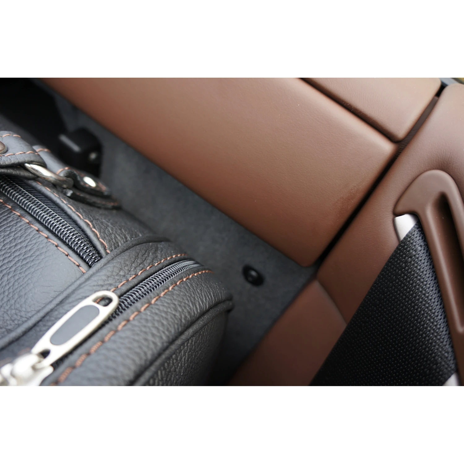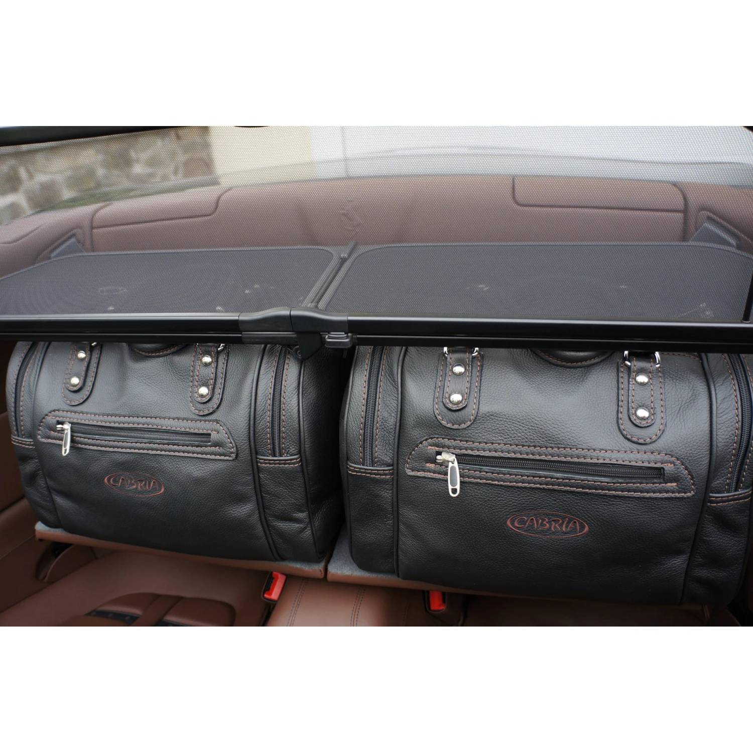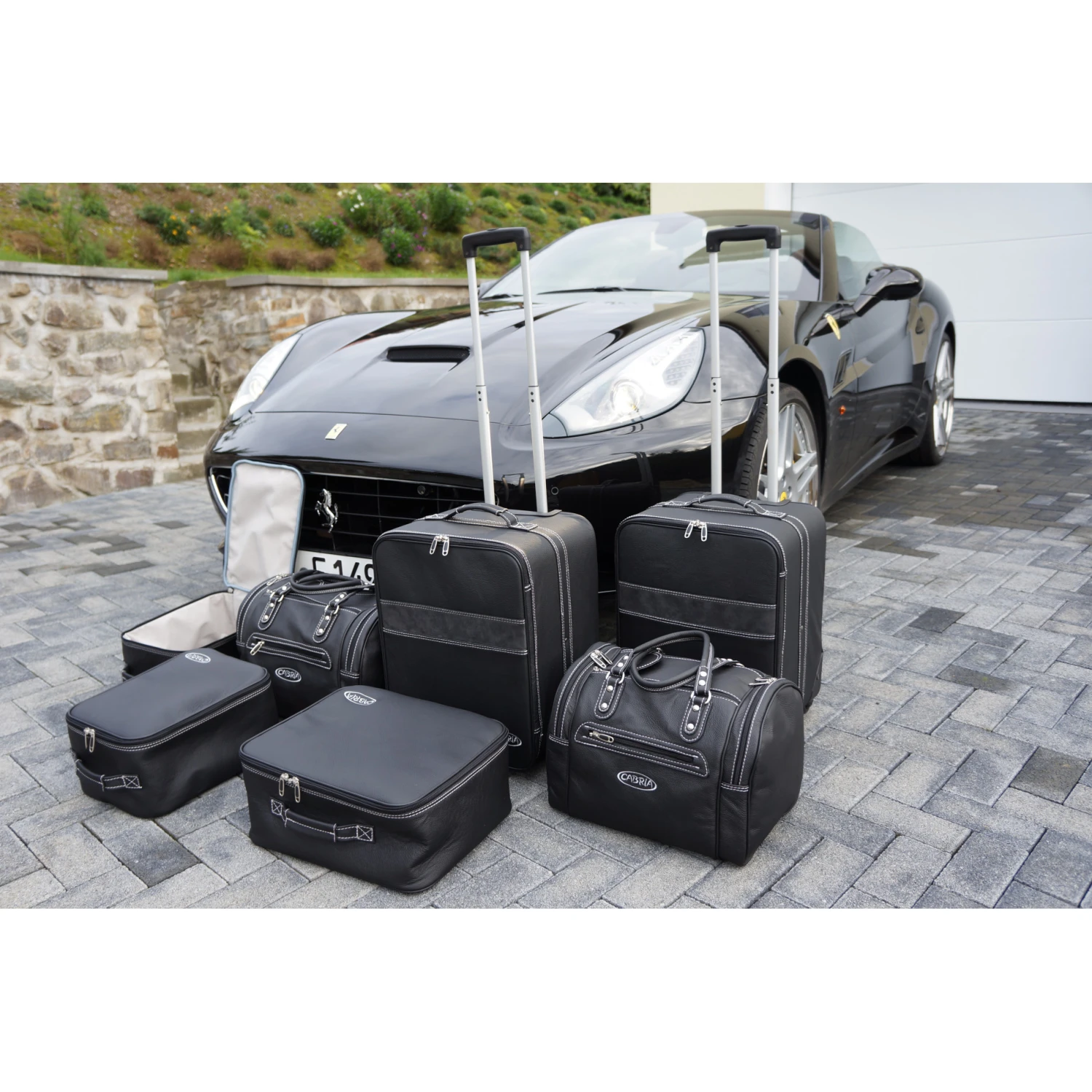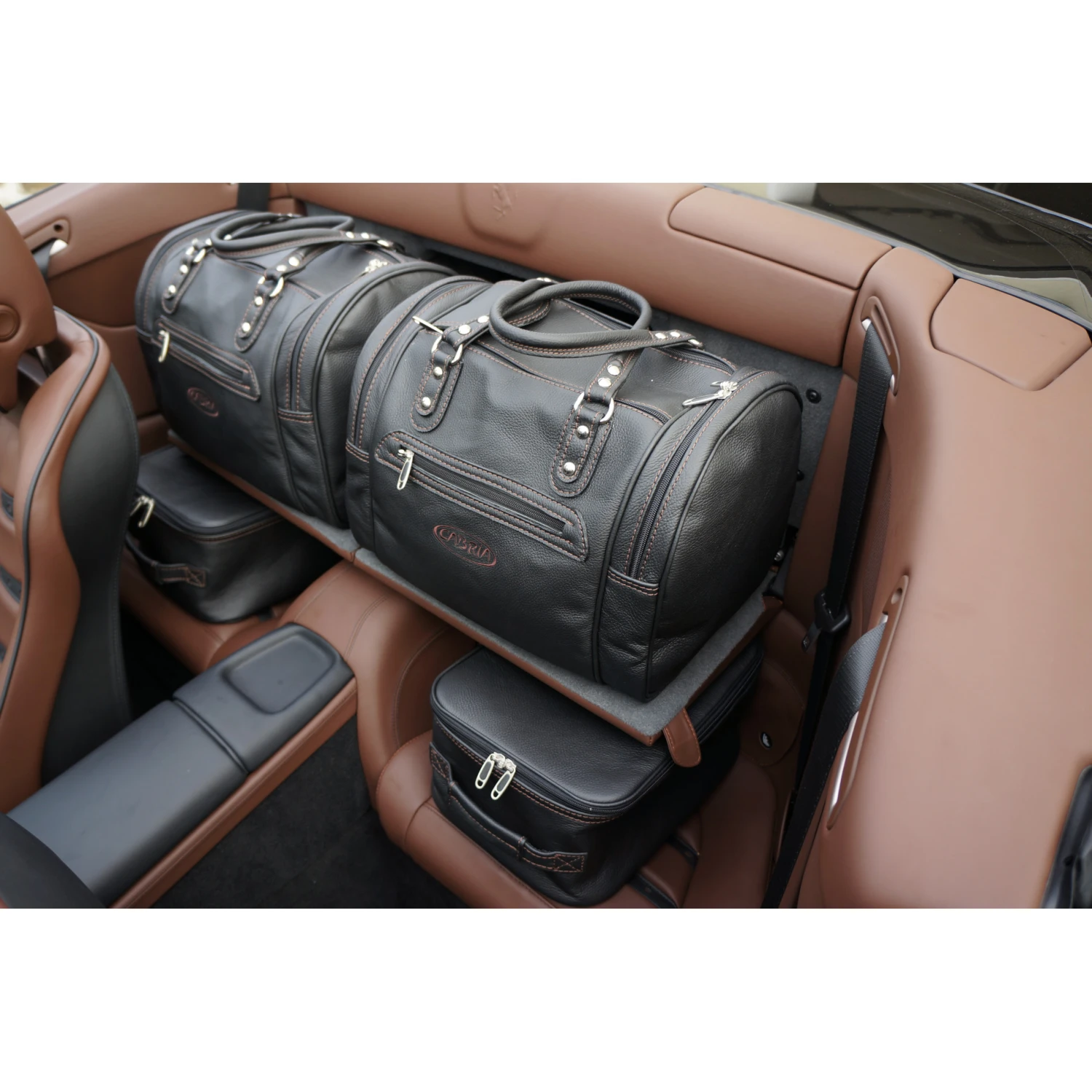 Dieses vierteilige Taschenset von Roadsterbag ist speziell auf den Innenraum des Ferrari California zugeschnitten. Die eleganten Taschen aus echtem, italienischem Qualitätsleder passen perfekt auf die Rückbank des Wagens, so dass Sie mit maximalem Gepäck auf Reisen gehen können. Die erstklassige Verarbeitung und das hochwertige Innenfutter aus edler Ancarra-Mikrofaser verleihen dem Set eine edle Optik, die sich nahtlos in das Innendesign Ihres Wagens einfügt. Dank bequemer Tragegriffe lassen sich die Gepäckstücke komfortabel transportieren.