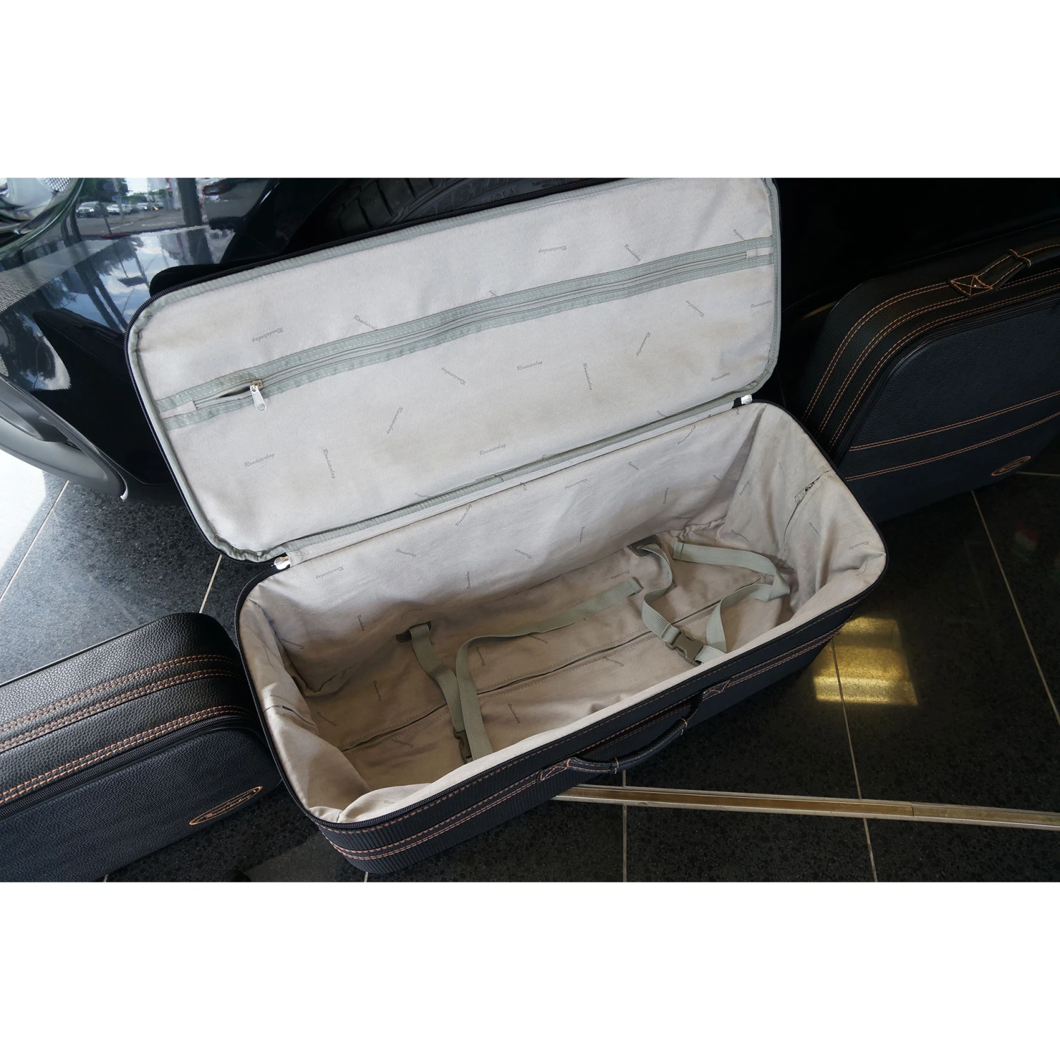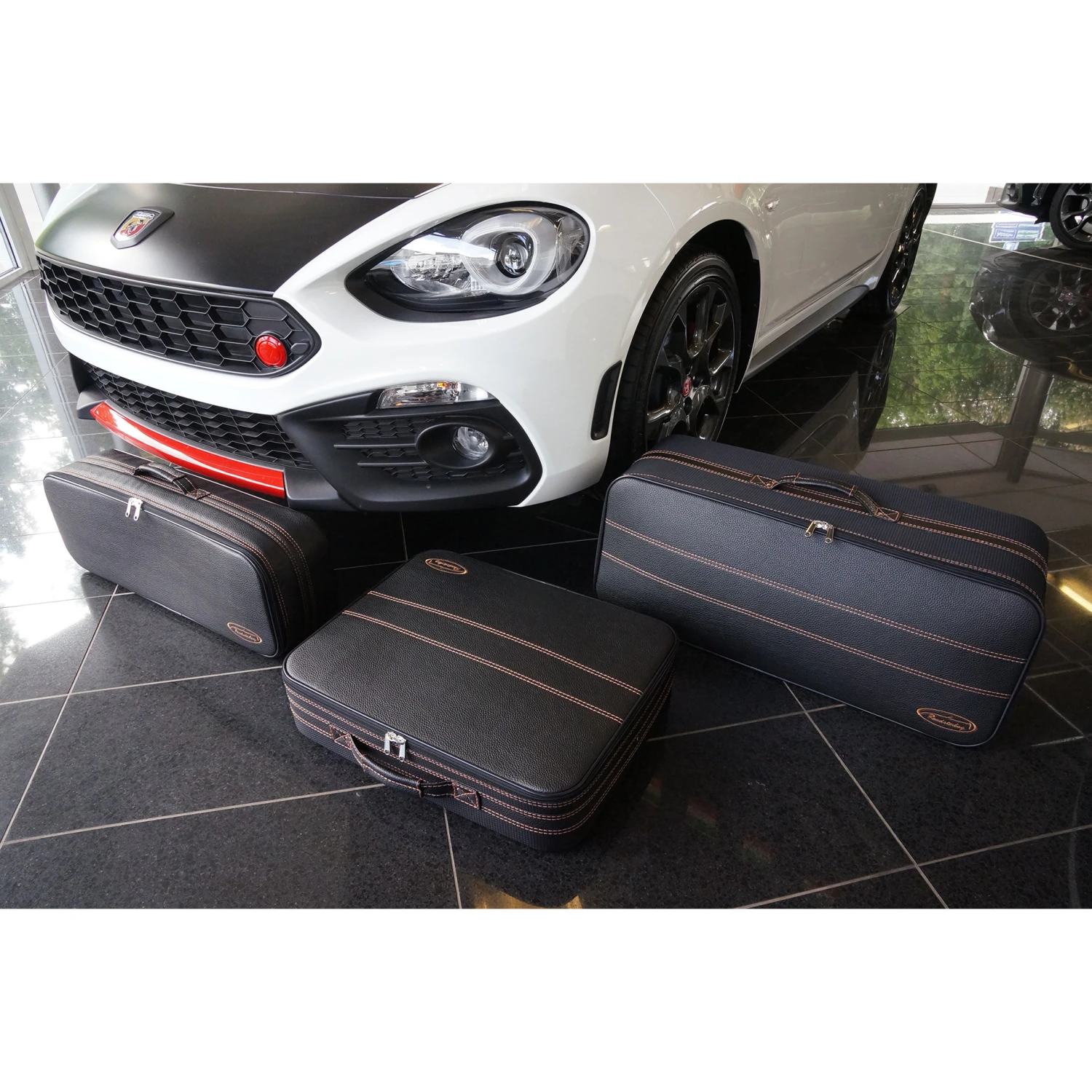 Fiat 124 Spider (EU-Version) – 3-tlg. Kofferset Kofferraum – Naht Mokka