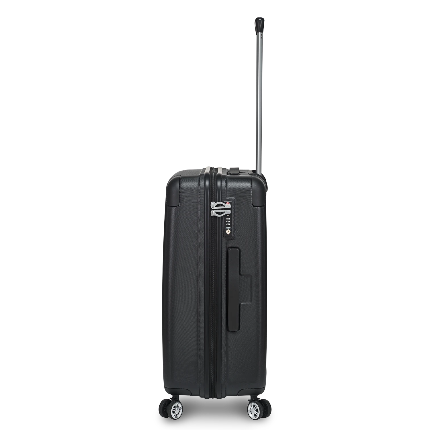 Deutsche Ingenieurskunst, ein hightech ABS Material extra stark durch Eckenschutz. Das Material ist extrem robust, sehr stabil, stoßunempfindlich und bruchsicher. Kleine Kratzer sind auf Grund der Oberflächenbeschaffenheit fast nicht sichtbar. Die vertikalen Wölbungen verleihen der Schale ein Höchstmaß an Stabilität. Der leichte, Hartschalen Trolley eignet sich für jede Reise und verwahrt Ihr Gepäck immer sicher. Kugel gelagerte 360º Komfort Doppelrollen halten den Koffer jederzeit auf Spur, sind sehr geräuscharm und machen dem Reisenden die Handhabung sehr einfach. Das 3-fach arretierbare Teleskopgestänge ist optimal verlässlich und aus hochwertigem Aluminium gefertigt. In seinem großzügigem Innenraum ist er vollständig mit einem hochwertigem, abwaschbarem Satin-Nylon ausgestattet und in ein Reißverschluss-Hauptfach und ein Hemdenfach mit hoch belastbaren Kreuzspanngurten unterteilt. Der hochwertige Look strahlt Sicherheit aus und der Koffer ist ideal für einen Kurztrip. Die Ausstattung mit einem TSA Schloss für die Reisen in die USA und GB sowie ein integriertes Adressfeld sind selbstverständlich.