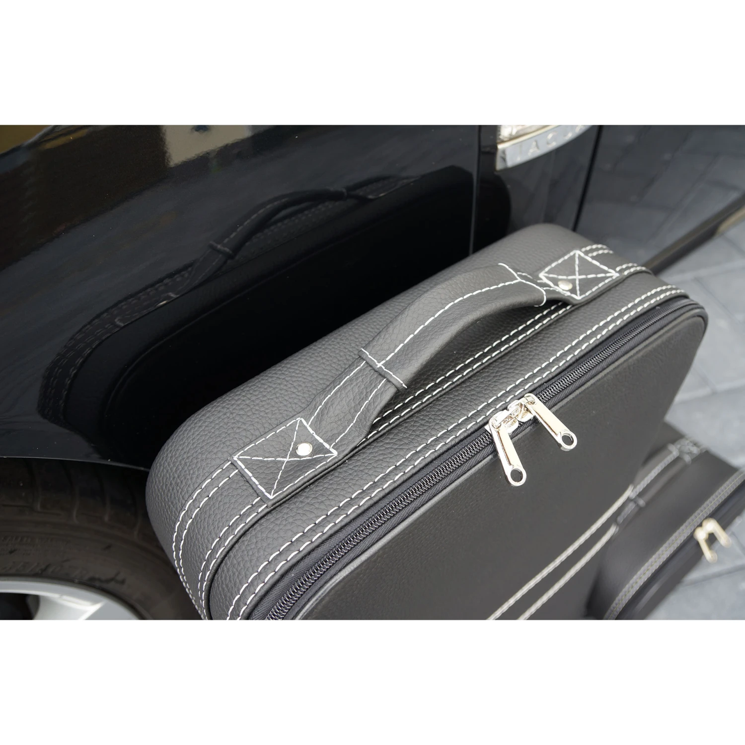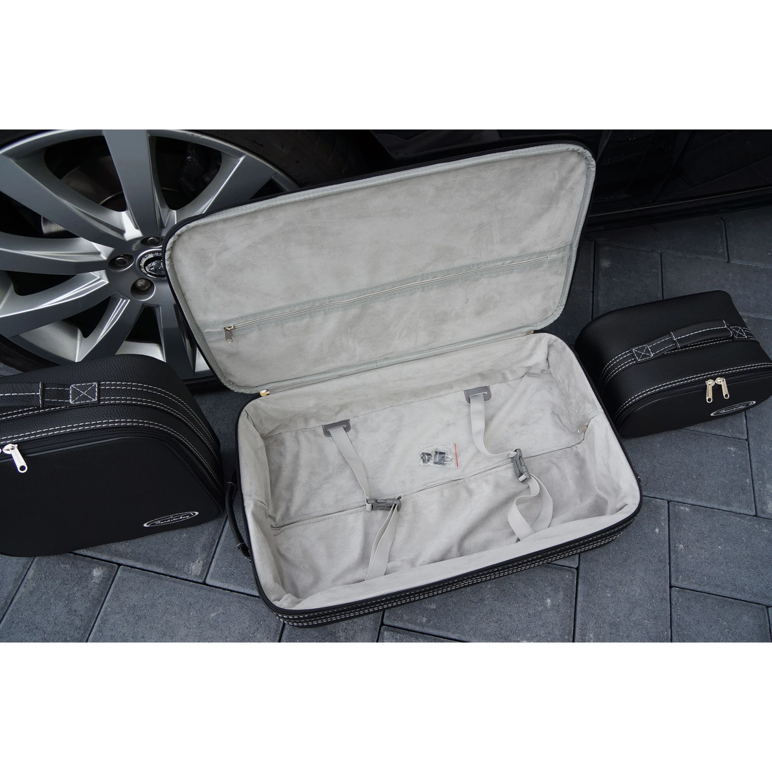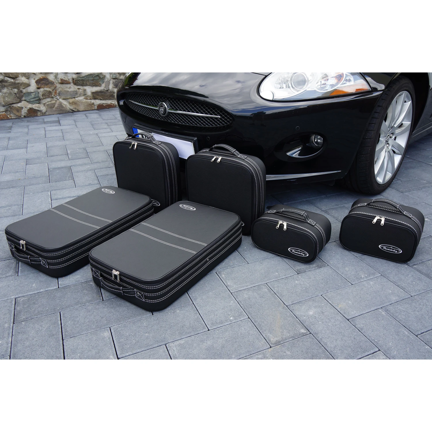 Dieses sechsteilige Kofferset von Roadsterbag ist speziell auf den Kofferraum des Jaguar XK Cabrio zugeschnitten. Der Koffer nutzen den vorhandenen Stauraum optimal aus. Die erstklassige Verarbeitung und das hochwertige Innenfutter aus edler Ancarra-Mikrofaser verleihen dem Set eine edle Optik, die sich nahtlos in das Innendesign Ihres Wagens einfügt. Dank bequemer Tragegriffe lassen sich die Gepäckstücke komfortabel transportieren.