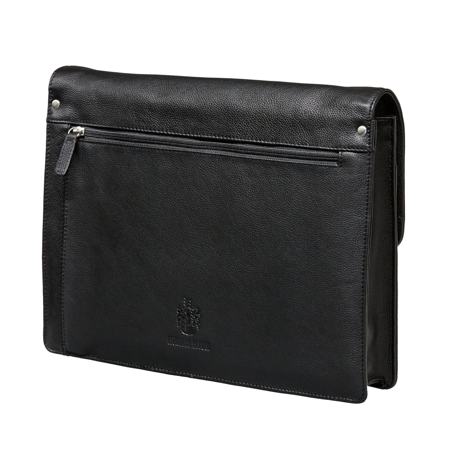 Bei der Serie Berlin II setzt Leonhard Heyden auf ein modernes, jugendliches Businessdesign, kombiniert mit funktionellen Details. Die elegante Konferenzmappe ist aus hochwertigem, gemilltem Vollrindleder gefertigt und verfügt über einen integrierten Organizer mit Handyfach, Einsteckfächern, Stiftschlaufen und Schlüsselhalter. Dokumente in DIN A4-Größe passen mühelos in das geräumige Hauptfach, das sich über einen Magnetdruckknopf sicher verschließen lässt.