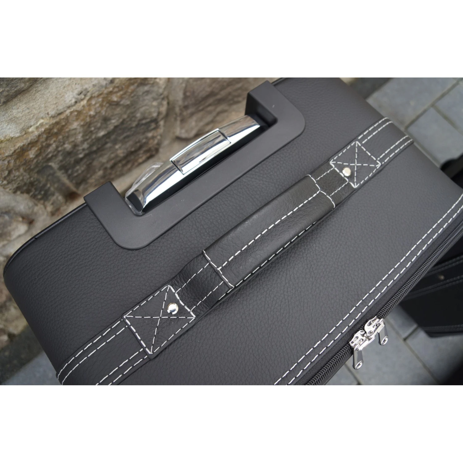 Dieses fünfteilige Kofferset von Roadsterbag ist speziell auf den Kofferraum des Maserati GranTurismo zugeschnitten. Der Trolley und die passenden Koffer nutzen den vorhandenen Stauraum optimal aus. Der Trolley ist mit voll versenkbarem Griff, silikongedämpften, verchromten Laufrollen, Kugellagerung und Inside-Trolley-Technik aus leichtem Aluminium ausgestattet. Die erstklassige Verarbeitung und das hochwertige Innenfutter aus edler Ancarra-Mikrofaser verleihen dem Set eine edle Optik, die sich nahtlos in das Innendesign Ihres Wagens einfügt. Dank bequemer Tragegriffe lassen sich die Gepäckstücke komfortabel transportieren.