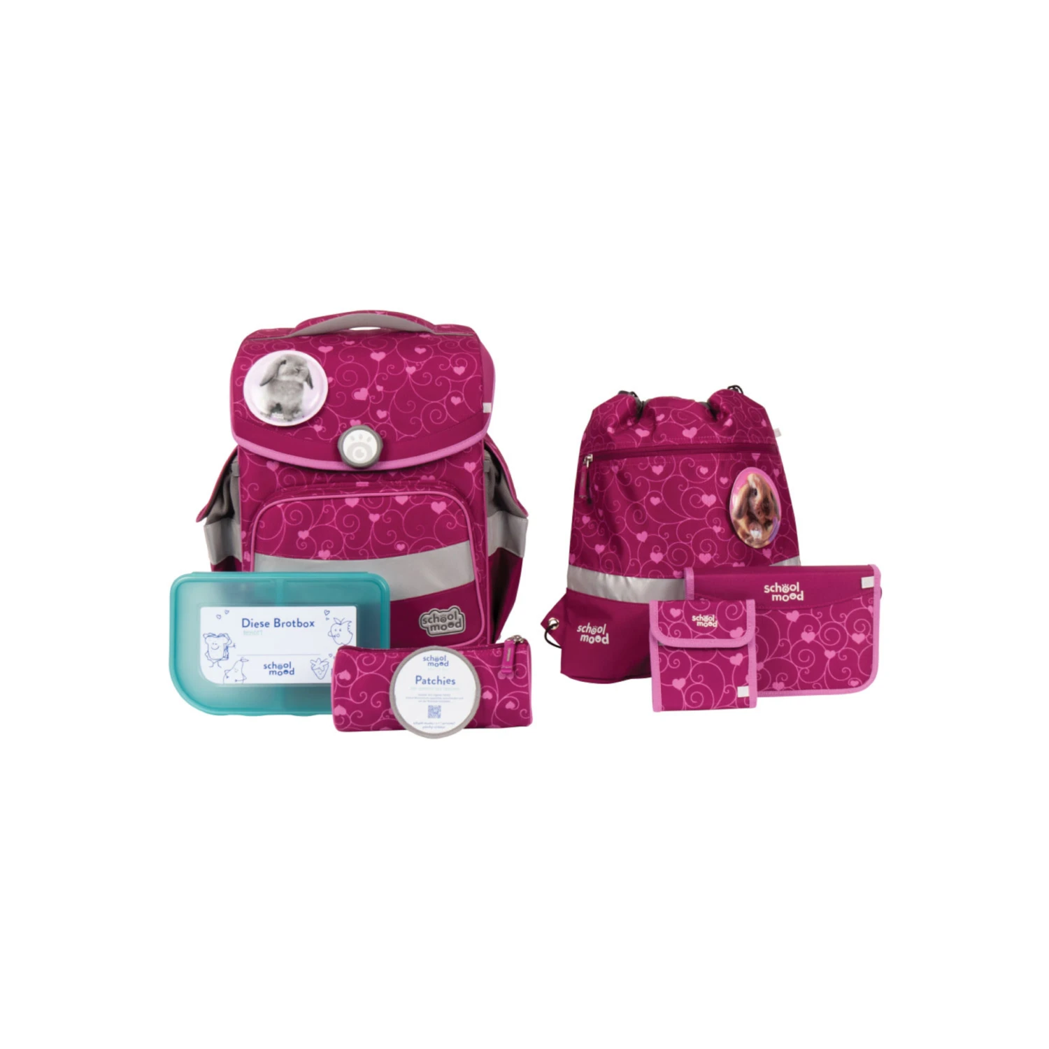 Das Material des Ranzens besteht aus Polyester mit PFC-freier Spezialbeschichtung für Schutz vor Regen, Schmutz und Kratzern und ist leicht zu reinigen. Für noch mehr Nachhaltig bestehen die Bunt- und Bleistifte aus recyceltem Material und sind holzfrei. Der Turnbeutel kann am Ranzen fixiert werden. Zwei wechselbare Patchies für Motivaustausch und 1 Blanko-Patchy für individuelle Gestaltungsmöglichkeiten lassen der Kreativität freien Lauf.