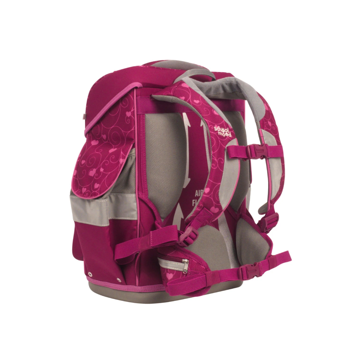 Das ergonomisch geformte, atmungsaktive Rückenpolster sorgt für bequemen Sitz und optimale Luftzirkulation. Weiche, breite Schultergurte, welche stufenlos in der Länge verstellbar sind, passen sich jeder Wachstumsphase an. Der höhenverstellbare Brustgurt kann problemlos auf die Größe des Kindes eingestellt werden und die stabile, bruchsichere Kunststoffschnalle sorgt für den perfekten Sitz. Der gepolsterter Beckengurt sorgt für ideale Gewichtsverteilung und kann bei Nichtbedarf im Rückenteil verstaut werden. Große retroreflektierende Flächen (Oralite) mit hohem Rückstrahlwert am Ranzen sind für hohe Sichtbarkeit und Sicherheit verantwortlich.