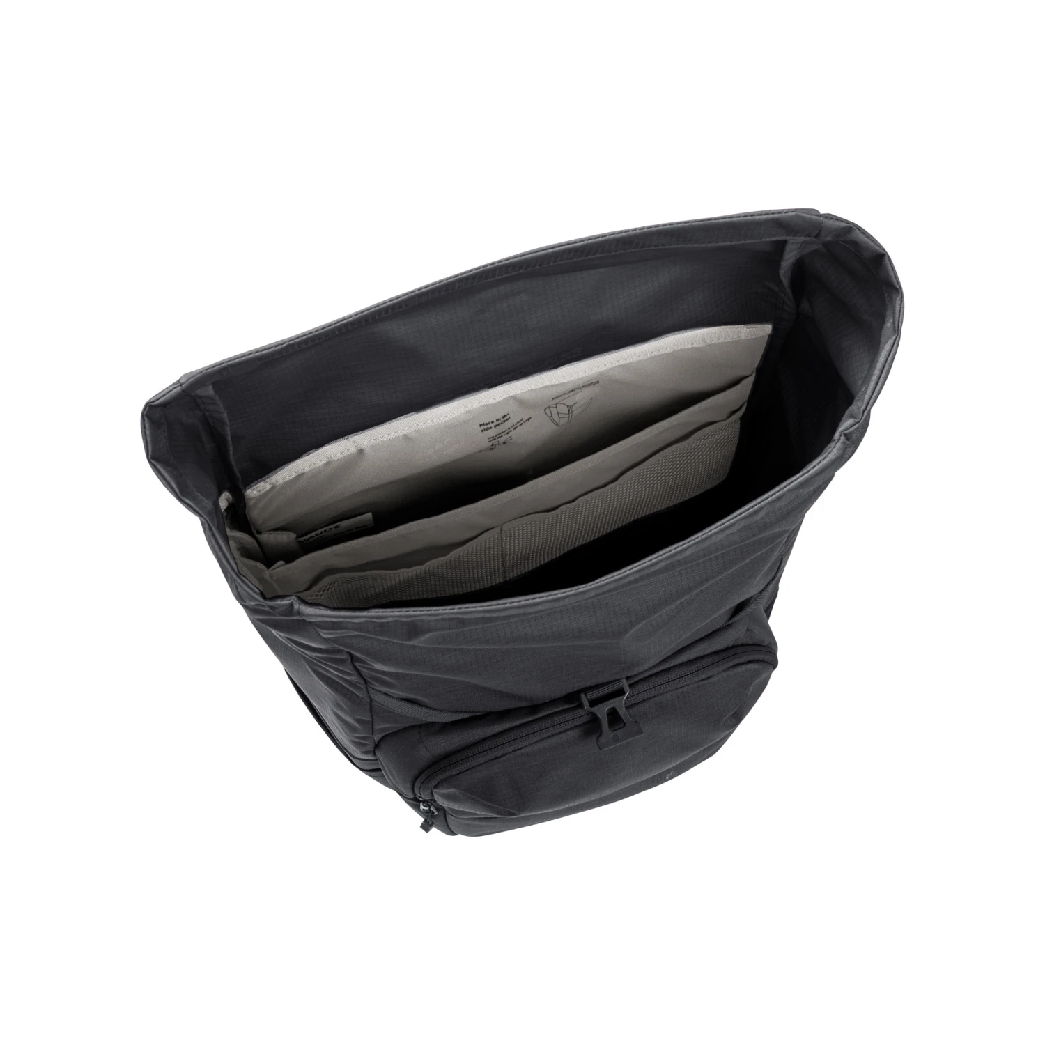 Viel Rucksack für wenig Geld – der geräumige Rollverschluss-Daypack Okab II steckt mit seinen 25 l Volumen einiges weg. Ein 13,3″ oder schmales 15″ Laptop findet im gepolsterten Hauptfach Platz. In Haupt- und Frontfach sorgen übersichtliche Organizer für Ordnung, Getränk und Powerbank können in den Seitenfächern verstaut werden. Der Okab II ist darüber hinaus ein „LED ready“-Produkt und lässt sich daher mit dem Light me up Kit von VAUDE ausstatten – einem innovativen Lichtleiter, welcher in Kombination mit einer herkömmlichen Powerbank zum Leuchten gebracht wird.